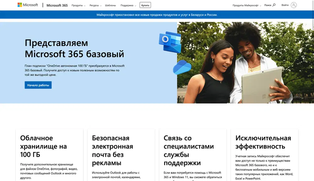Напомним, что компания Microsoft приостановила продажи товаров и услуг в России и Беларуси. Однако, подписку на облачные сервисы Microsoft 365 по-прежнему можно приобретать через сторонние магазины, которые в прошлом являлись официальными партнерами софтверного гиганта.Microsoft 365 базовый