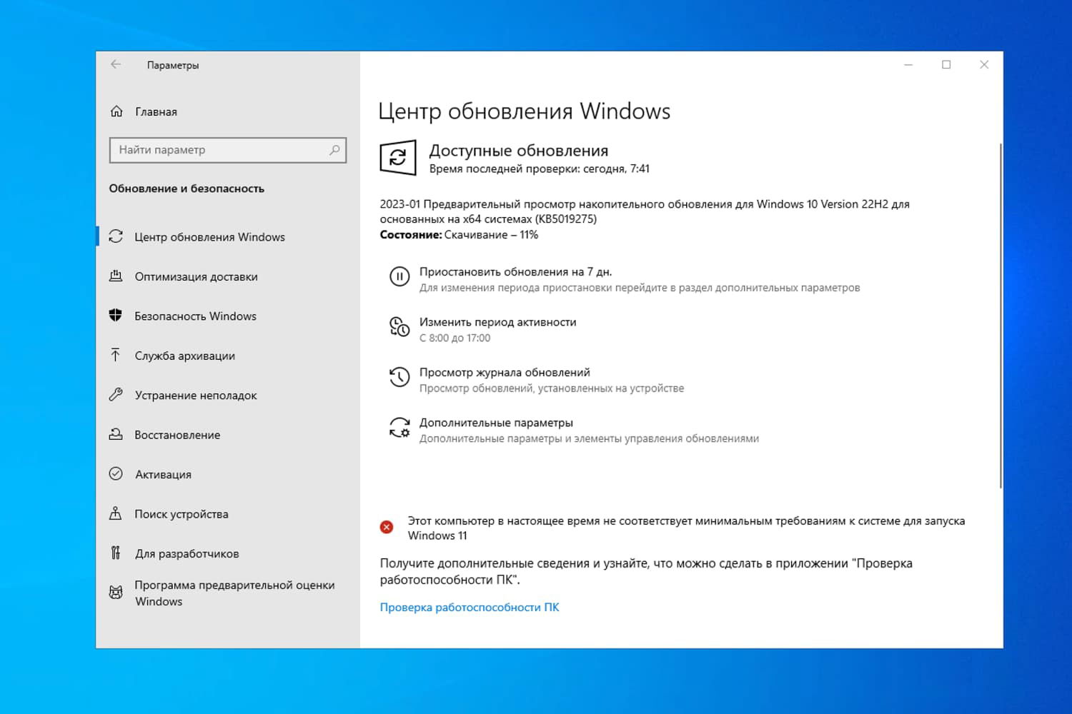 - Как скачать KB5019275 и установить обновление вручную