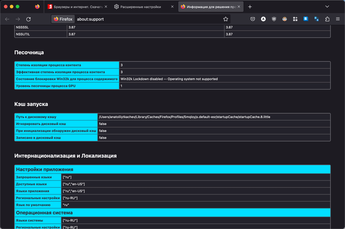 - Перейдите на внутреннюю страницу about:support или выберите Меню > Справка > Информация для решения проблем.