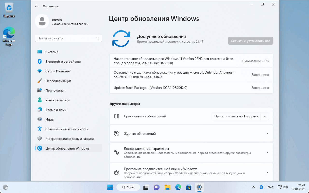 Когда вы увидите, что доступно Накопительное обновление для Windows 11 Version 22H2 для систем на базе процессоров x64, 2023 01 (KB5022360) нажмите Скачать и установить.