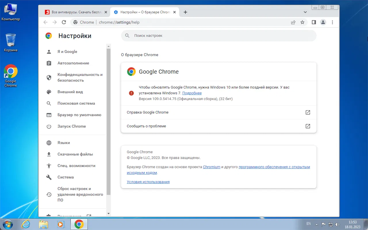 Chrome, Microsoft Edge и некоторые другие браузеры на основе Chromium перестанут работать в Windows 7, как только стабильные версии достигнут кодовой базы Chromium 110. Производители браузеров больше не будут предоставлять установщики, а если установщики будут скопированы с других устройств или зеркал, они не запустятся или установленный браузер откажется запускаться.