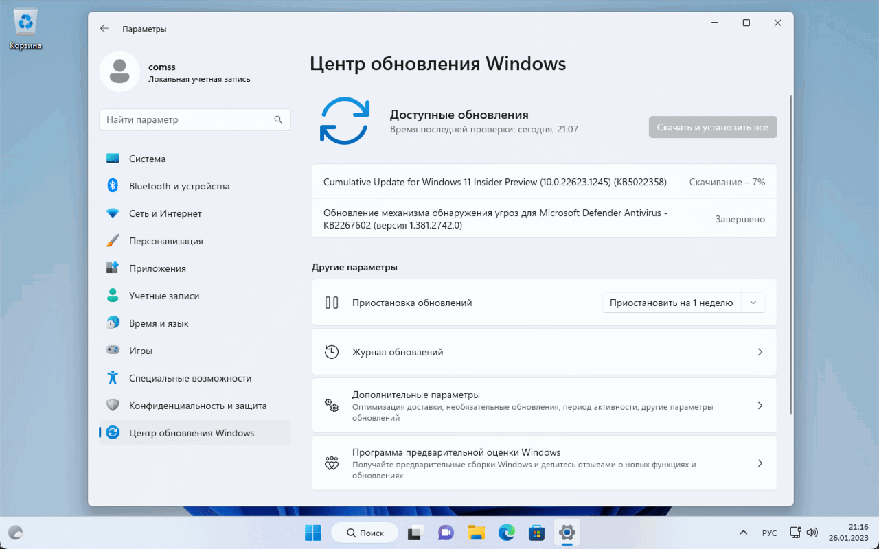 Обновлено: 26.01.2023. Накопительное обновление KB5022358 (Build 22623.1245 и 22621.1245) для Windows 11, версия 22H2 доступно для инсайдеров на канале Beta.