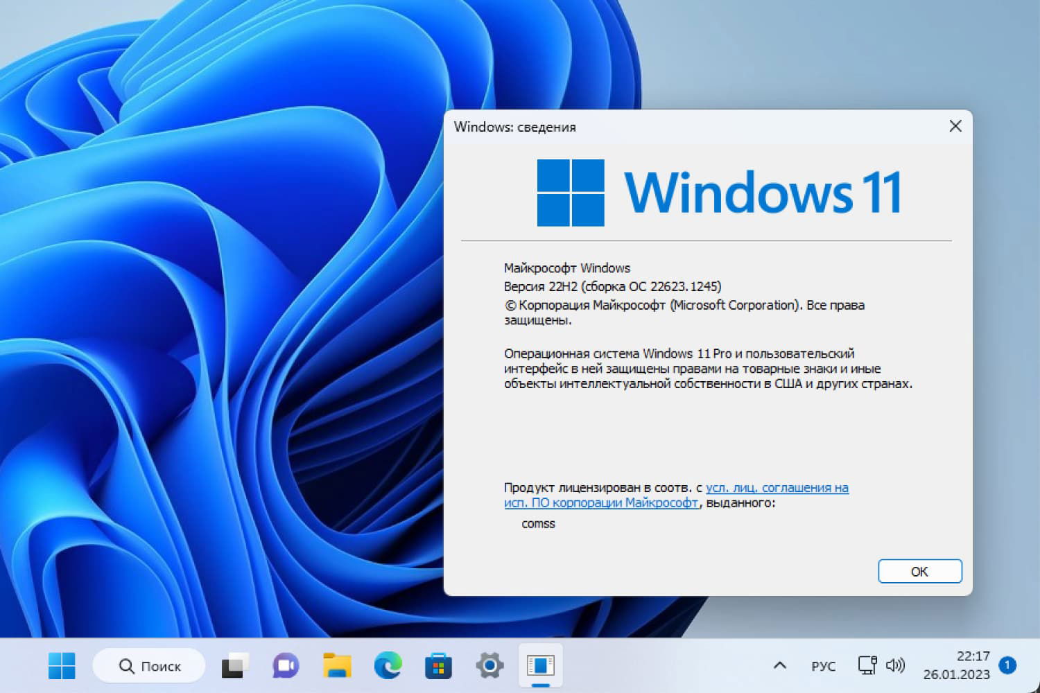 Windows 11, Версия 22H2 (Сборка ОС 22623.1245)