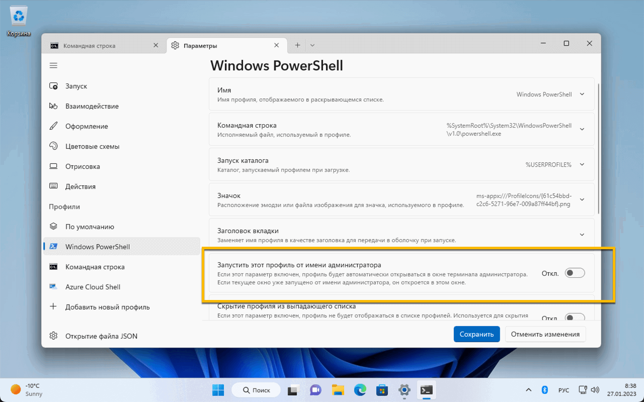 Ситуация усложняется, если Windows Terminal больше не может быть запущен из-за отсутствия профиля с отключенным параметром запуска от имени администратора.