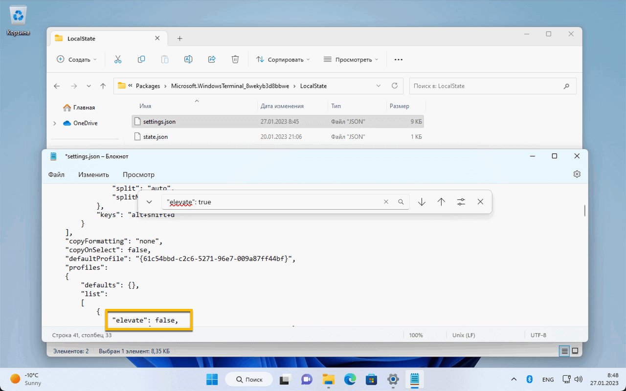 - Откройте файл settings.json с помощью текстового редактора, например Блокнота, и найдите запись