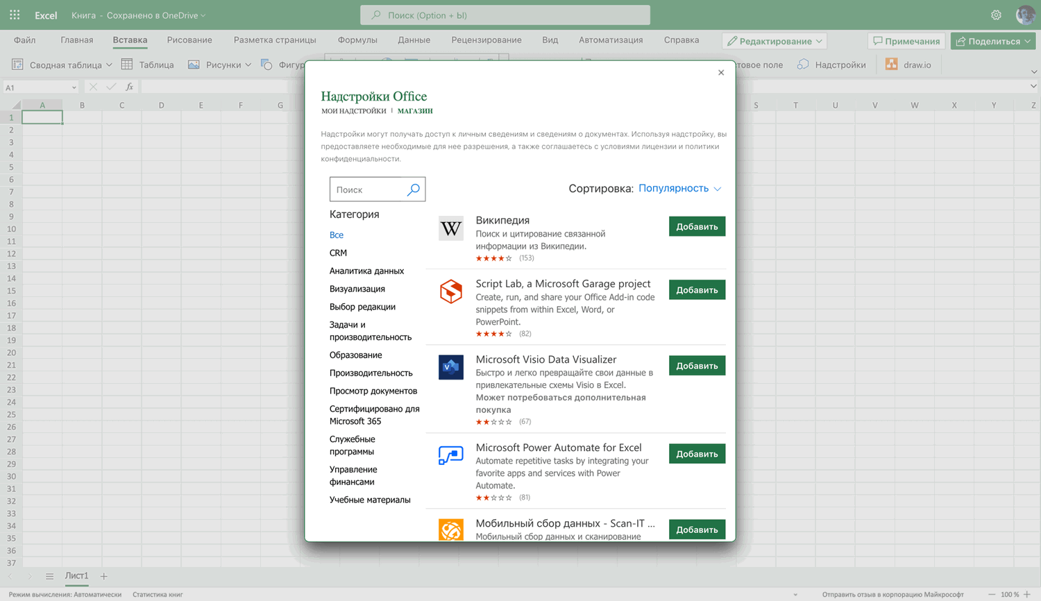 При этом пользователи смогут использовать надстройки на локальном ПК и надстройки, загруженные из официального магазина с помощью команды Вставка > Надстройки > Получить надстройки.