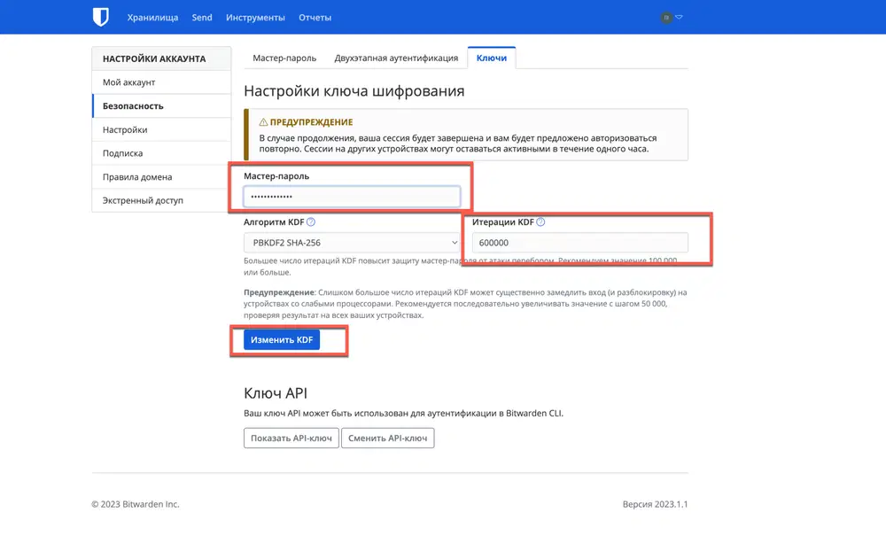 Как изменить количество итераций KDF в Bitwarden Password Manager