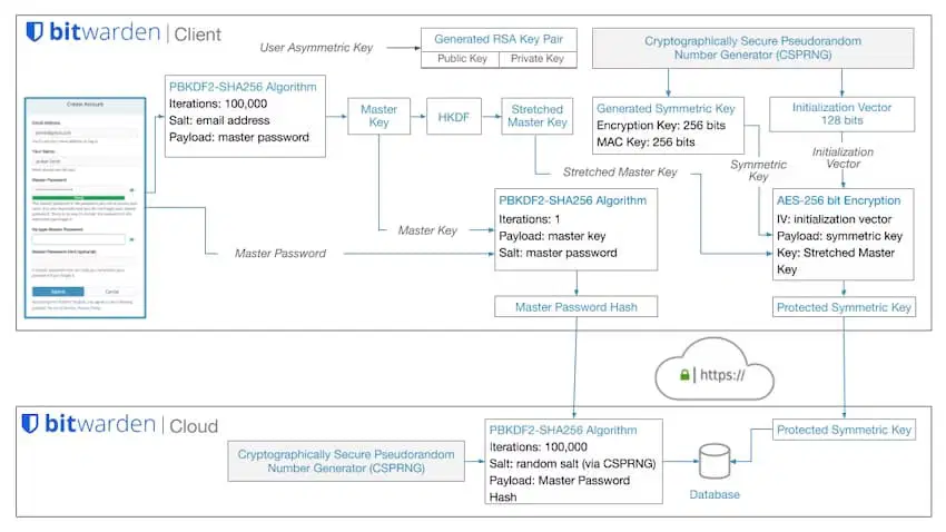 Bitwarden выполняет 2 вида итераций: итерации на стороне клиента (на вашем ПК) и итерации на стороне сервера. В официальном документе, опубликованном компанией, указано, что Bitwarden выполняет 200 001 цикл, то есть 100 000 + 1 с использованием PBKDF2 SHA-256 на стороне клиента и 100 000 на стороне сервера.