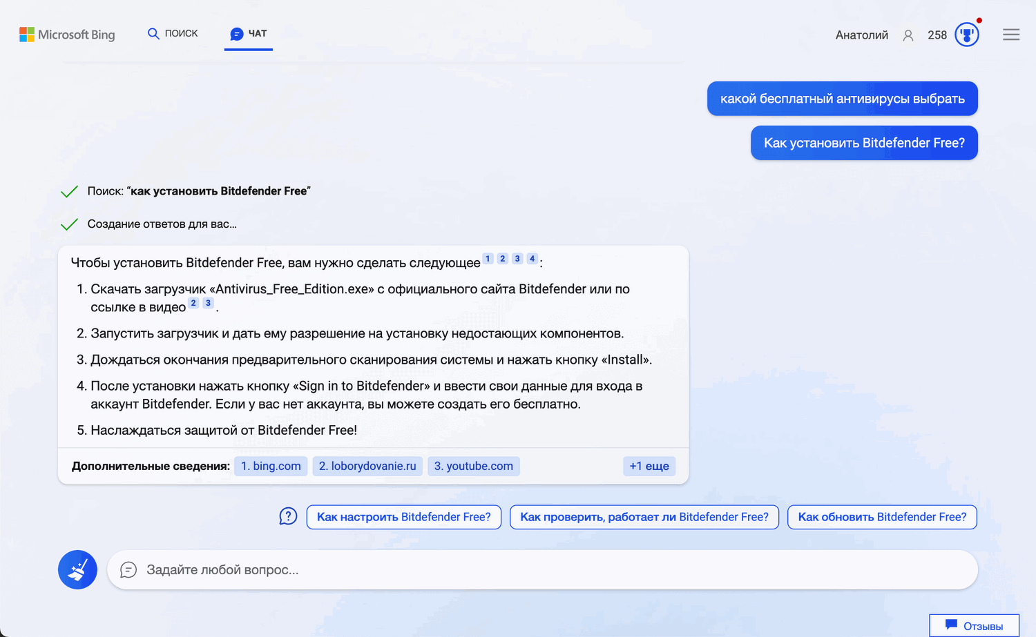 Хотя предварительная версия новой поисковой системы Bing с поддержкой ChatGPT включает всего лишь несколько стандартных запросов и ответов, полноценная версия будет работать так же, как система OpenAI – и даже лучше. Microsoft называет свою интеграцию ChatGPT улучшенной моделью, "моделью Прометея" (Prometheus Model), и утверждает, что она более мощная, чем GPT 3.5, и лучше отвечает на поисковые запросы, предоставляя более актуальную информацию и аннотированные ответы.