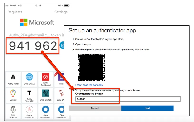 Код верификации обычно состоит из 6 знаков и может доставляться разными способами по запросу. Это может быть электронная почта, SMS или специальное приложение для аутентификации, такое как Authy или Microsoft Authenticator. Приложения для аутентификации являются более предпочтительным вариантом с точки зрения безопасности, потому что в случае с почтой и SMS, данные передаются в открытом виде.