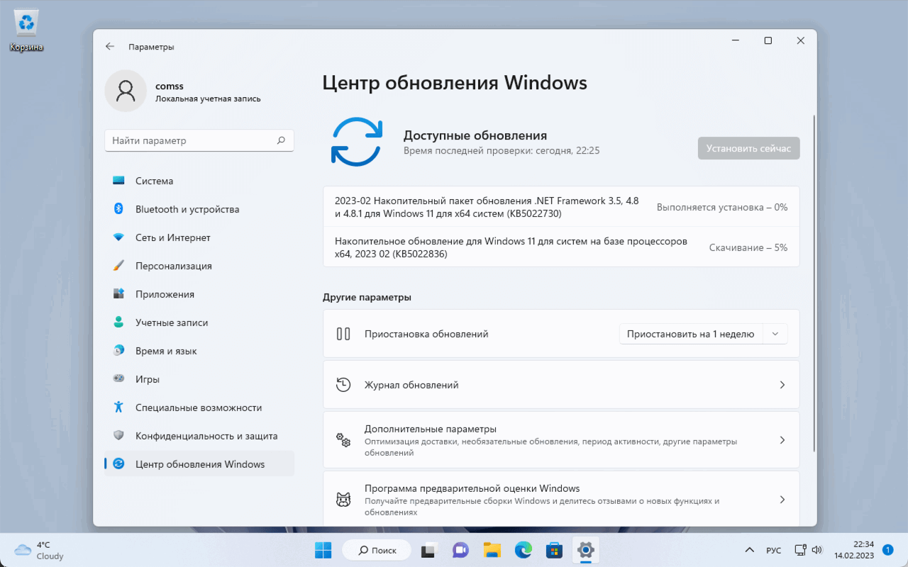 Для завершения установки потребуется перезагрузка компьютера. После обновления номер сборки Windows 11, версия 21H2 поменяется на 22000.1574.