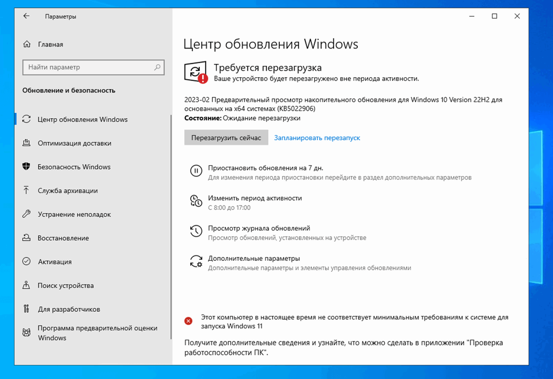 Обновлено: 17.02.2023. Обновление KB5022906 (Build 19045.2670) для Windows 10, версия 22H2 доступно участникам программы Windows Insider на канале предварительного выпуска Release Preview.