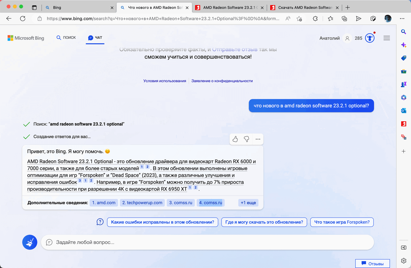 После этих случаев, Microsoft сообщила о новом обновлении функции чата Bing AI. Компания выяснила, что слишком длинные разговоры могут привести к тому, что Bing AI начнет терять нить беседы и отвечать некорректно. Поэтому Microsoft ввела ограничение на количество сообщений в чатах с Bing AI: до 5 сообщений на одну тему и до 50 чатов в день.