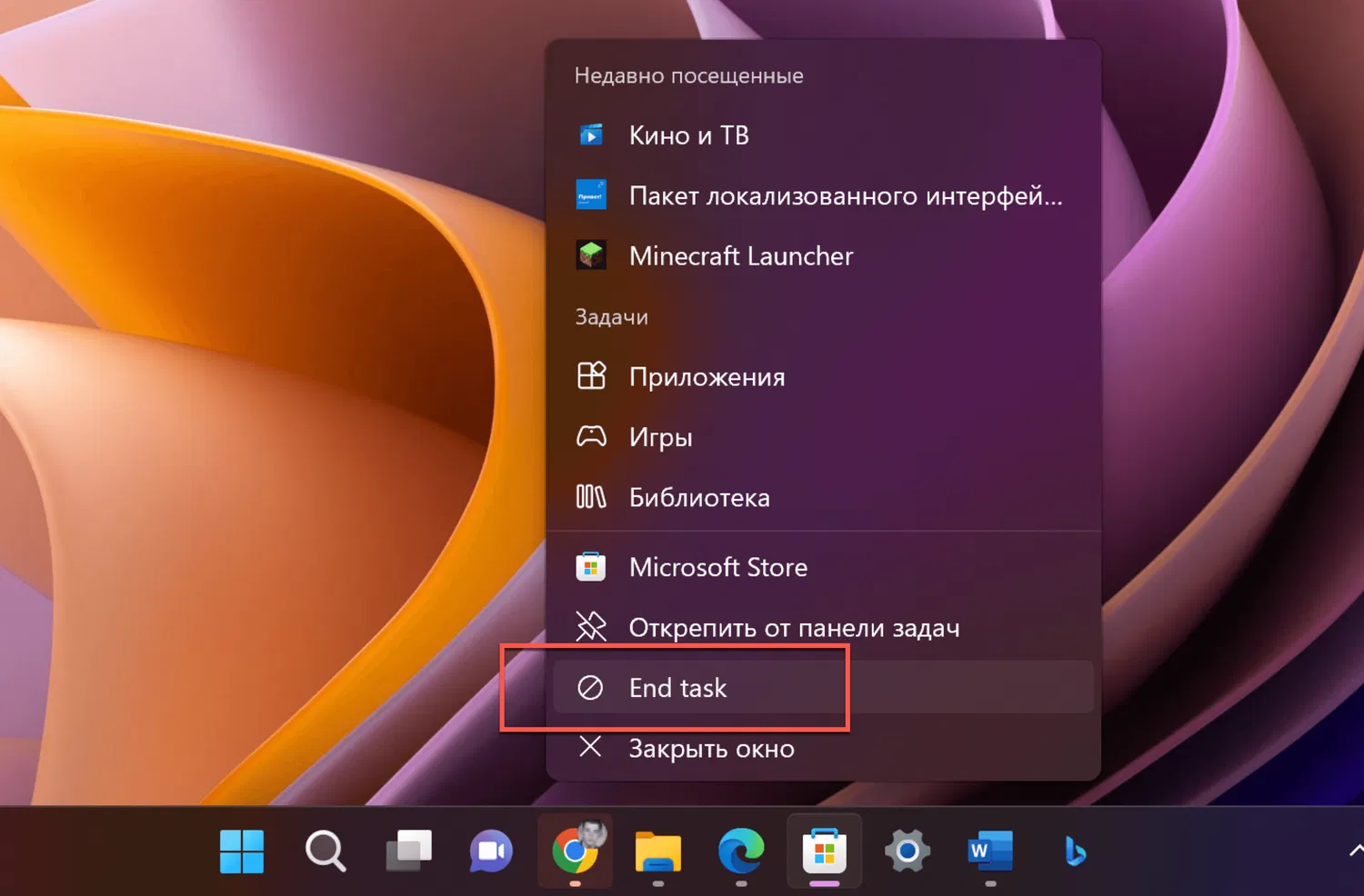 В Windows 11 Build 25300 (Dev) была добавлена опция «Завершить задачу» в списки переходов на панели задач, которая позволит закрыть все процессы приложения без использования Диспетчера задач.