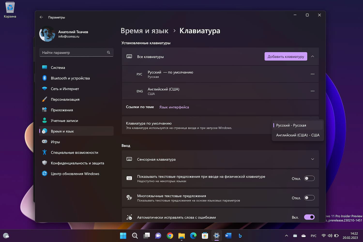 Как указать раскладку клавиатуры по умолчанию в Windows 11