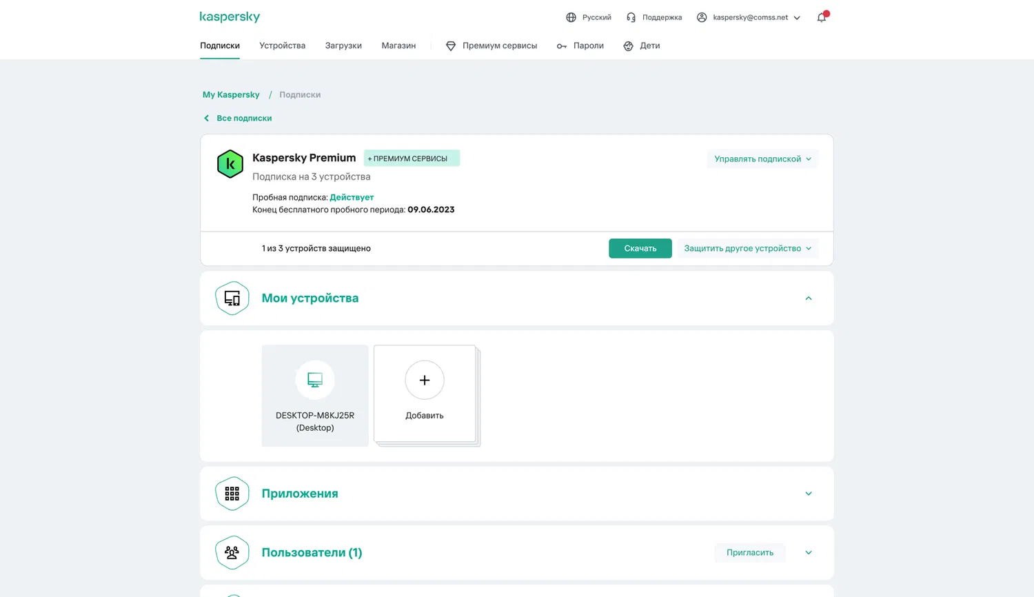 - Если раннее вы не регистрировались, для вас будет создан аккаунт на сайте My Kaspersky – это ваш личный кабинет, где вы можете управлять подписками, скачивать приложения и обращаться в техническую поддержку.
