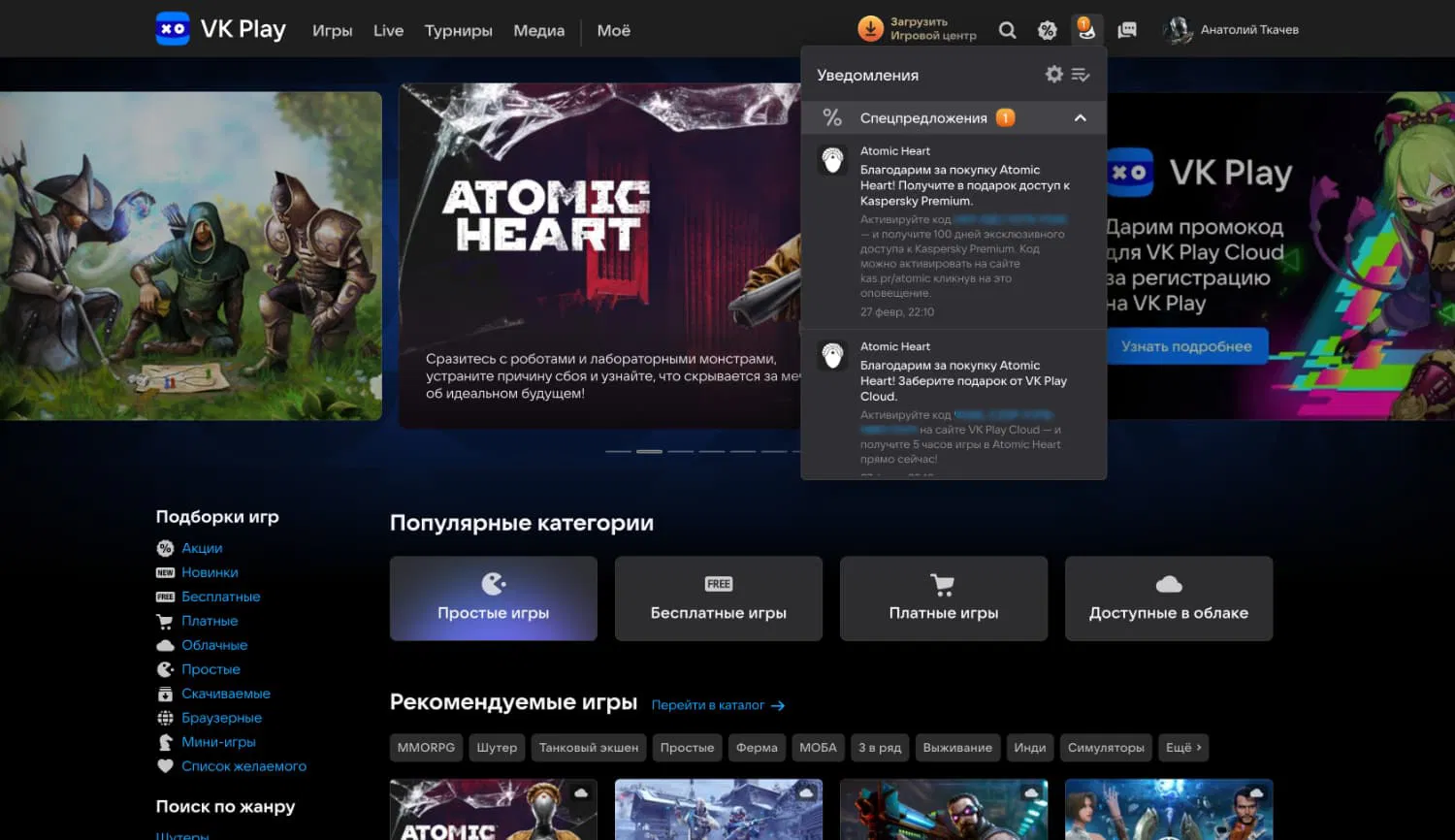 - Купит Atomic Heart для ПК в VK Play.