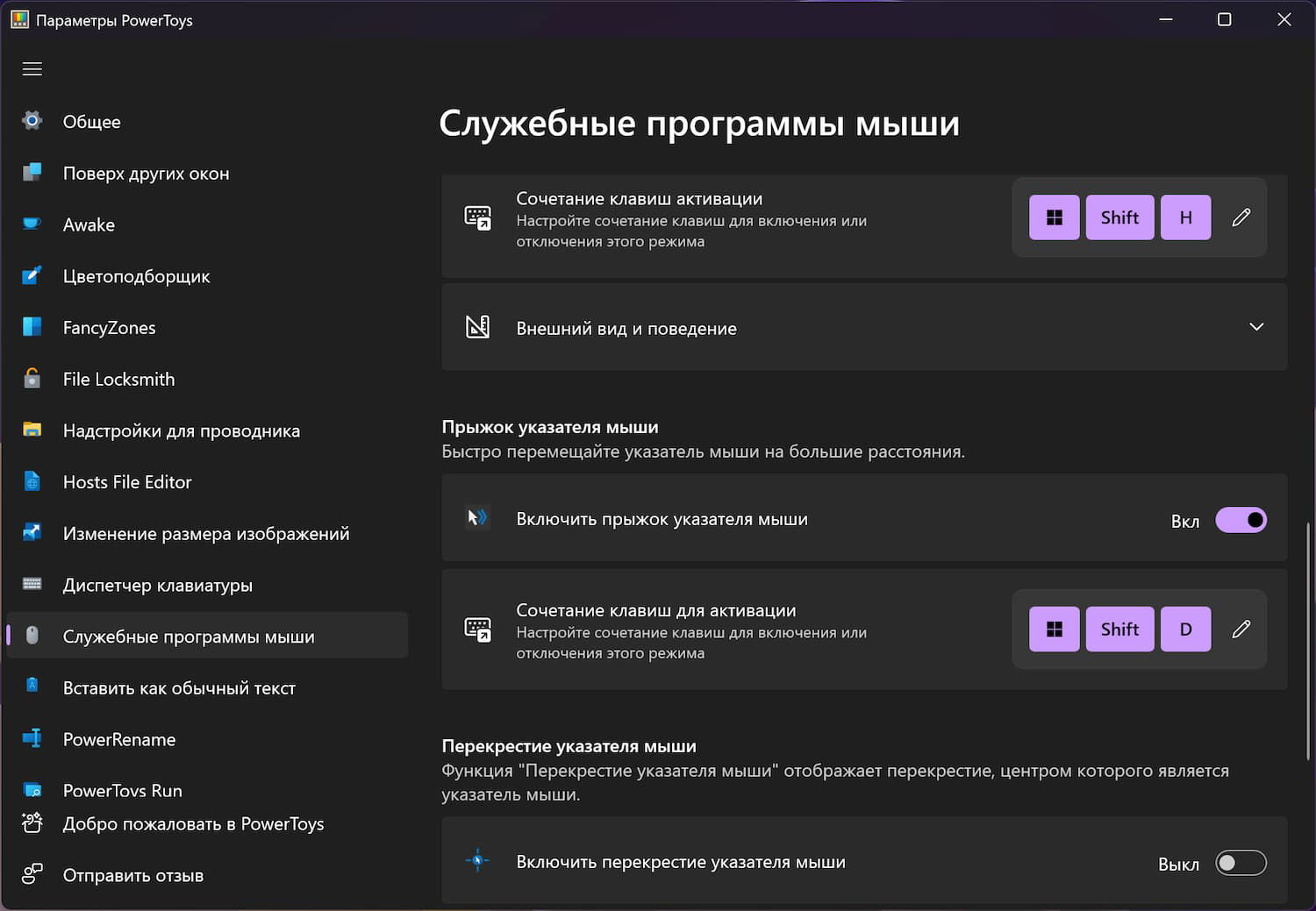 Вторая новая функция по умолчанию отключена. Она добавлена в утилиту «Служебные программы мыши», которая поддерживает функции поиска курсора и функцию выделения при щелчке мышью.