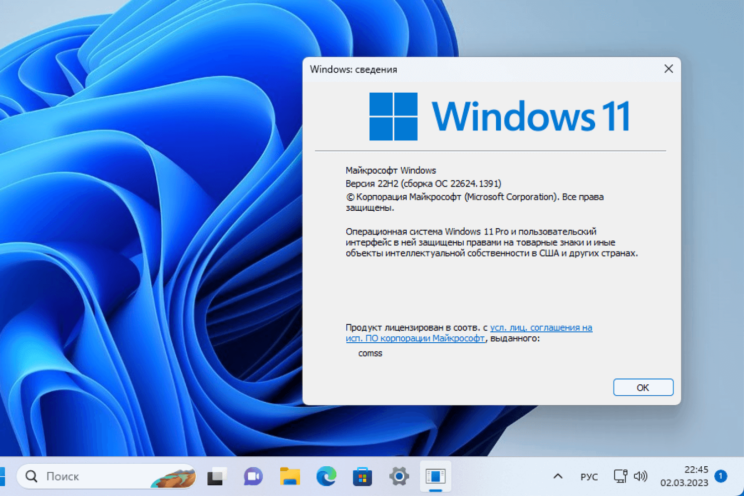 Windows 11, Версия 22H2 (Сборка ОС 22621.1391)