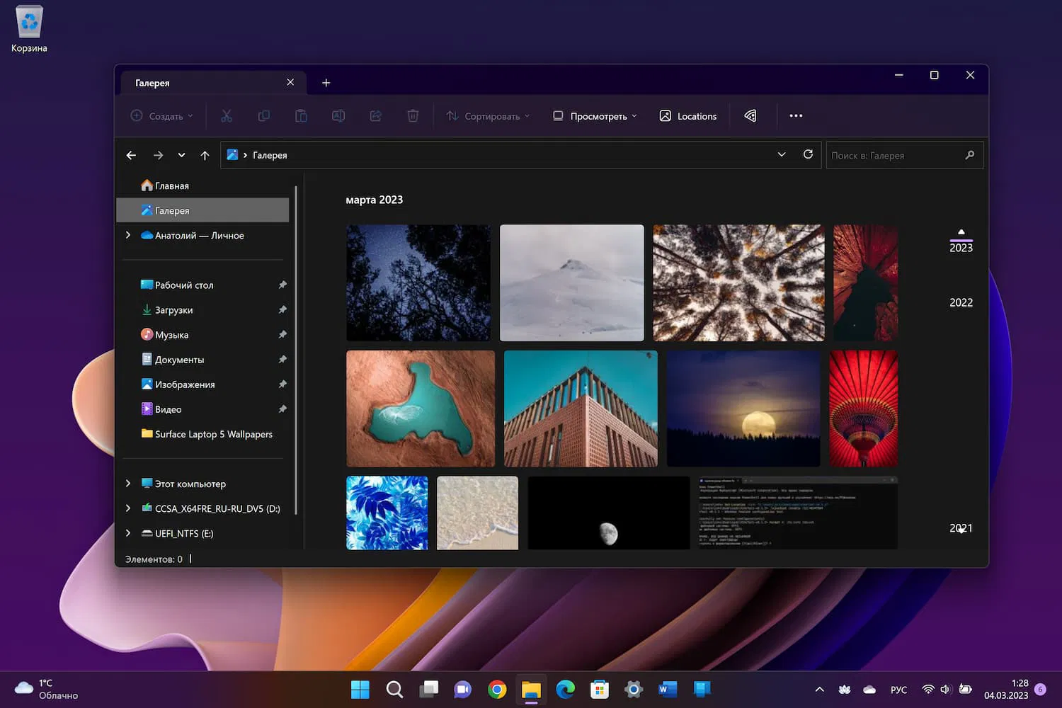 Раздел «Галерея» в «Проводнике»