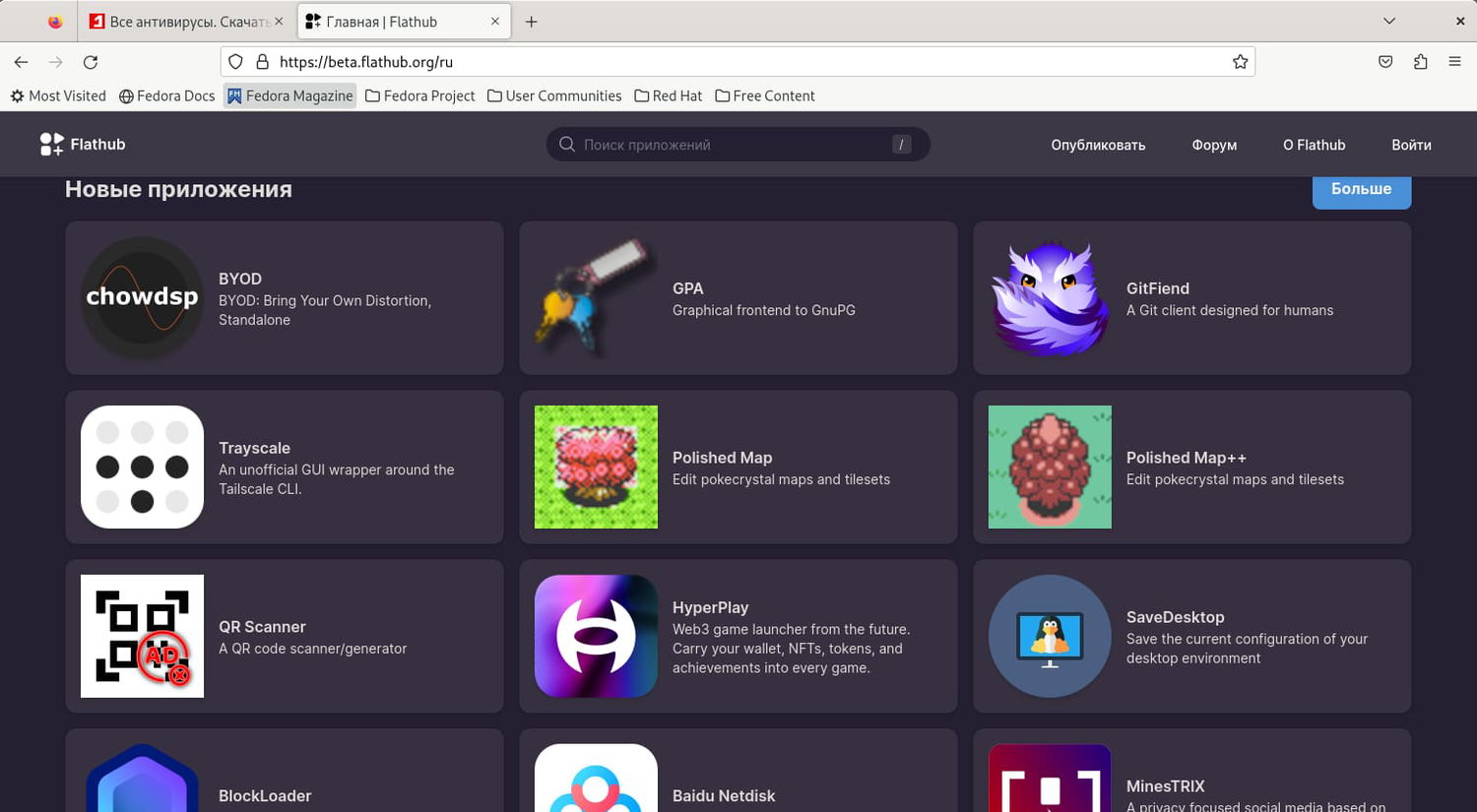 В Flathub также будут реализованы новые функции проверки, позволяющие различать приложения, загруженные разработчиками, доступны подмножества репозитория Flatpak, чтобы пользователи могли выбирать только проверенные и/или FLOSS-приложения, подписки на приложения, а также автоматизированный линтинг и сканирование безопасности на бэкенде.