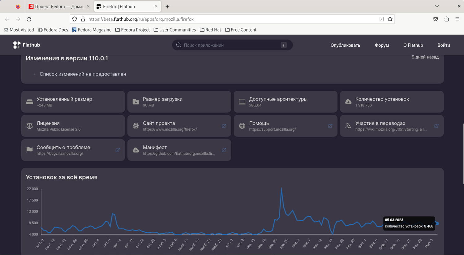 В настоящее время в репозитории Flathub доступно более 2000 приложений в универсальном двоичном формате Flatpak от более чем 1500 соавторов. Количество ежедневных загрузок приложений из репозитория составляет около 700 000 (!) загрузок.