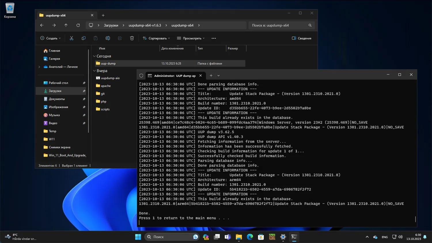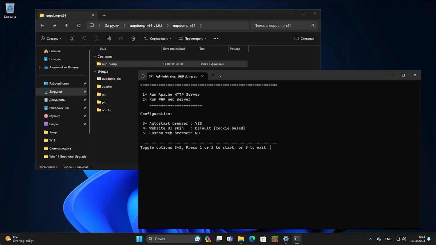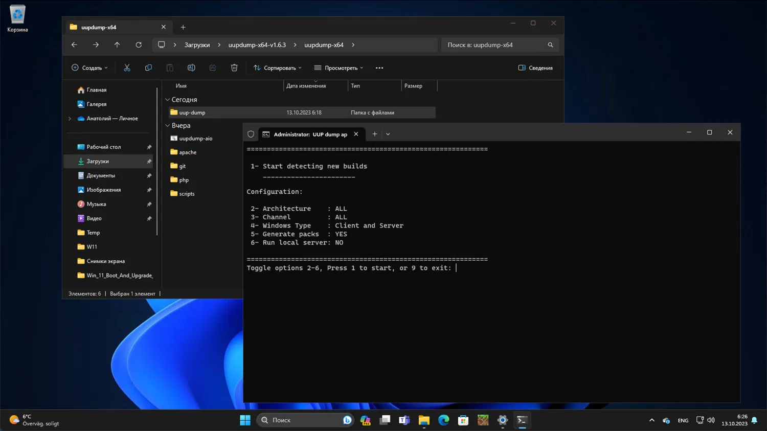 - Используйте скрипт uupdump-aio.cmd для запуска приложения в командной строке.