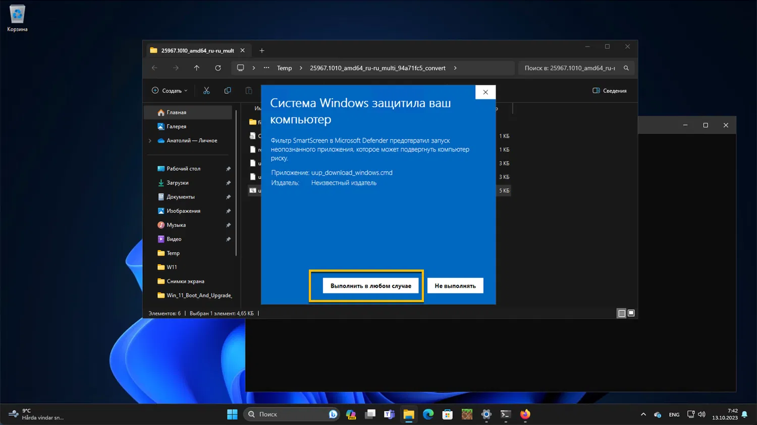 Откройте папку, в которую разархивировали архив и запустите файл командной строки uup_download_windows.cmd от имени администратора.