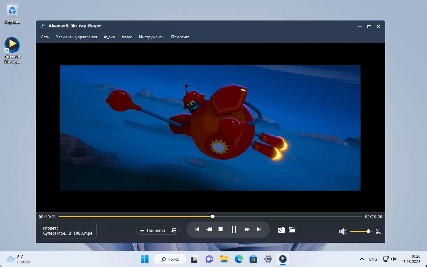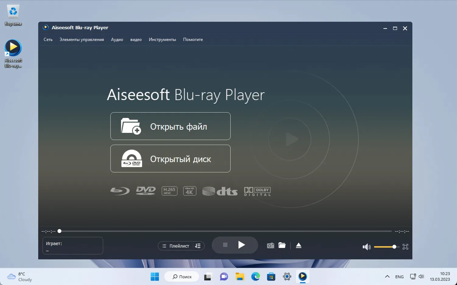 Aiseesoft Blu-ray Player – программа для воспроизведения дисков Blu-ray/папок/файлов ISO на компьютере, которая использует преимущества технологии искусственного интеллекта для улучшения качества воспроизводимого видео.