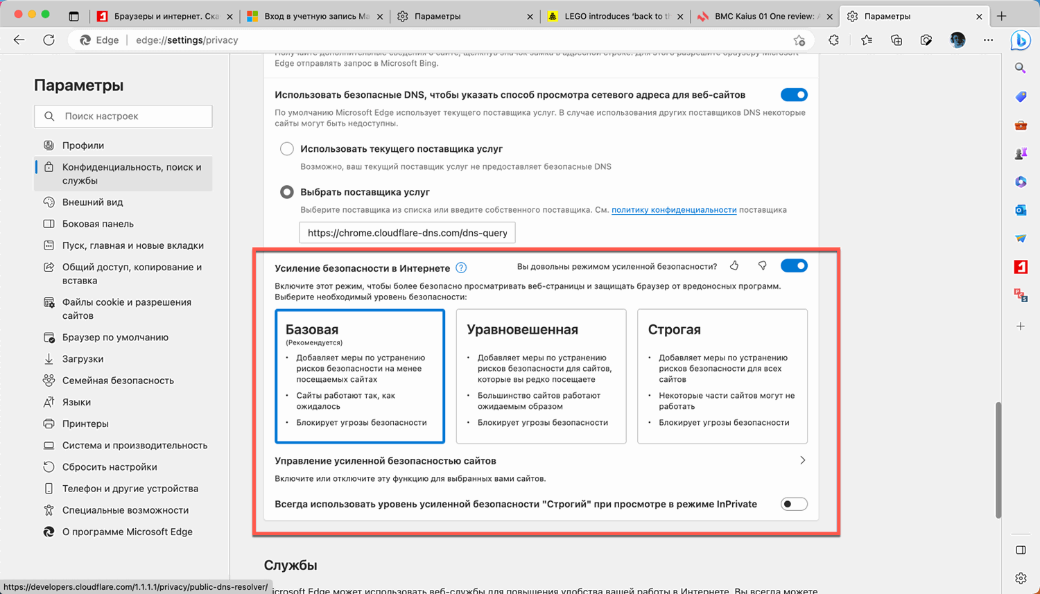 Режим «Усиление безопасности в Интернете»
