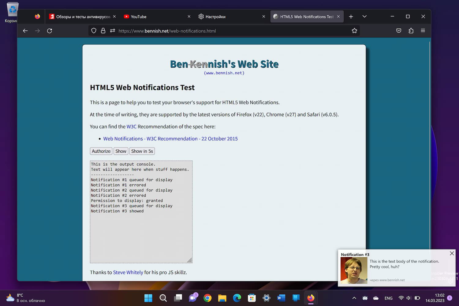 Firefox 111 получил поддержку нативных уведомлений Windows в Windows 10 и Windows 11. Ранее уведомления отображались в виде небольших всплывающих элементов в веб-браузере Firefox. В Firefox 111 появилась поддержка собственной системы уведомлений Windows.