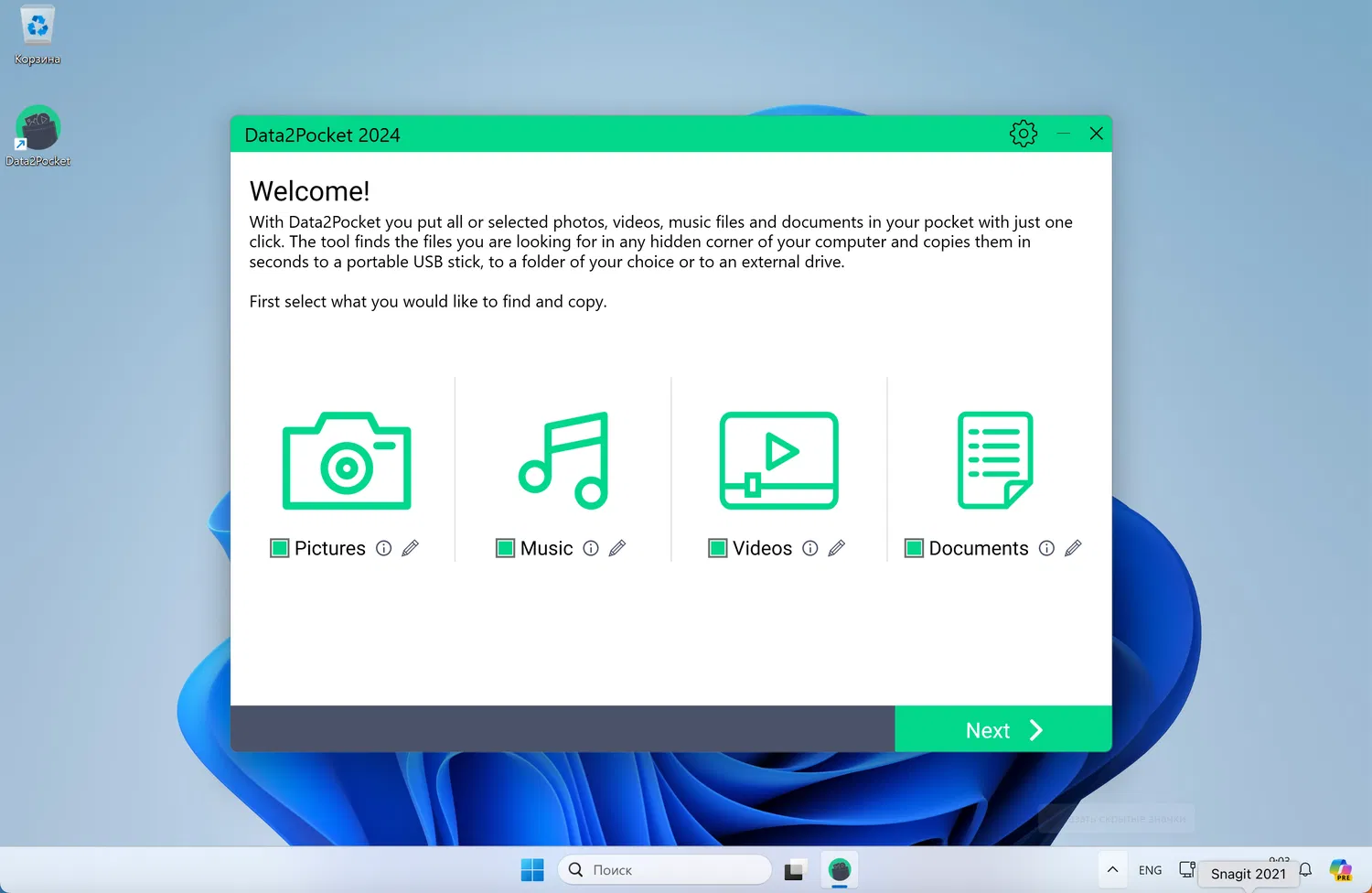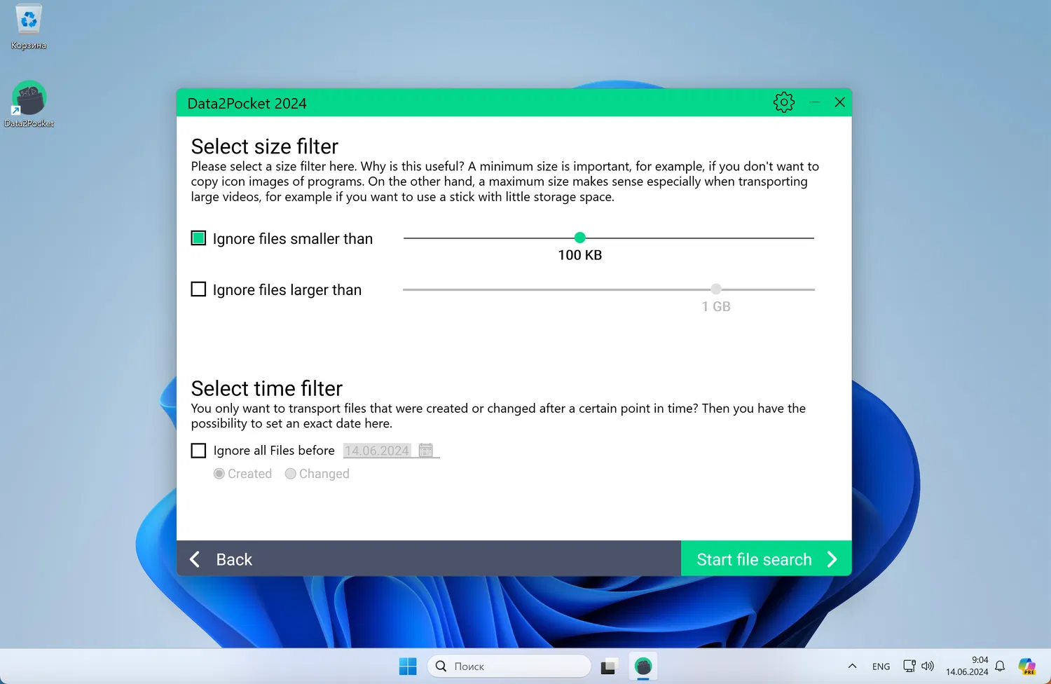 1. Скачайте установочный файл Abelssoft Data2Pocket и установите программу на компьютер или USB-флешку. Обратите внимание, что программа имеет английский язык интерфейса: