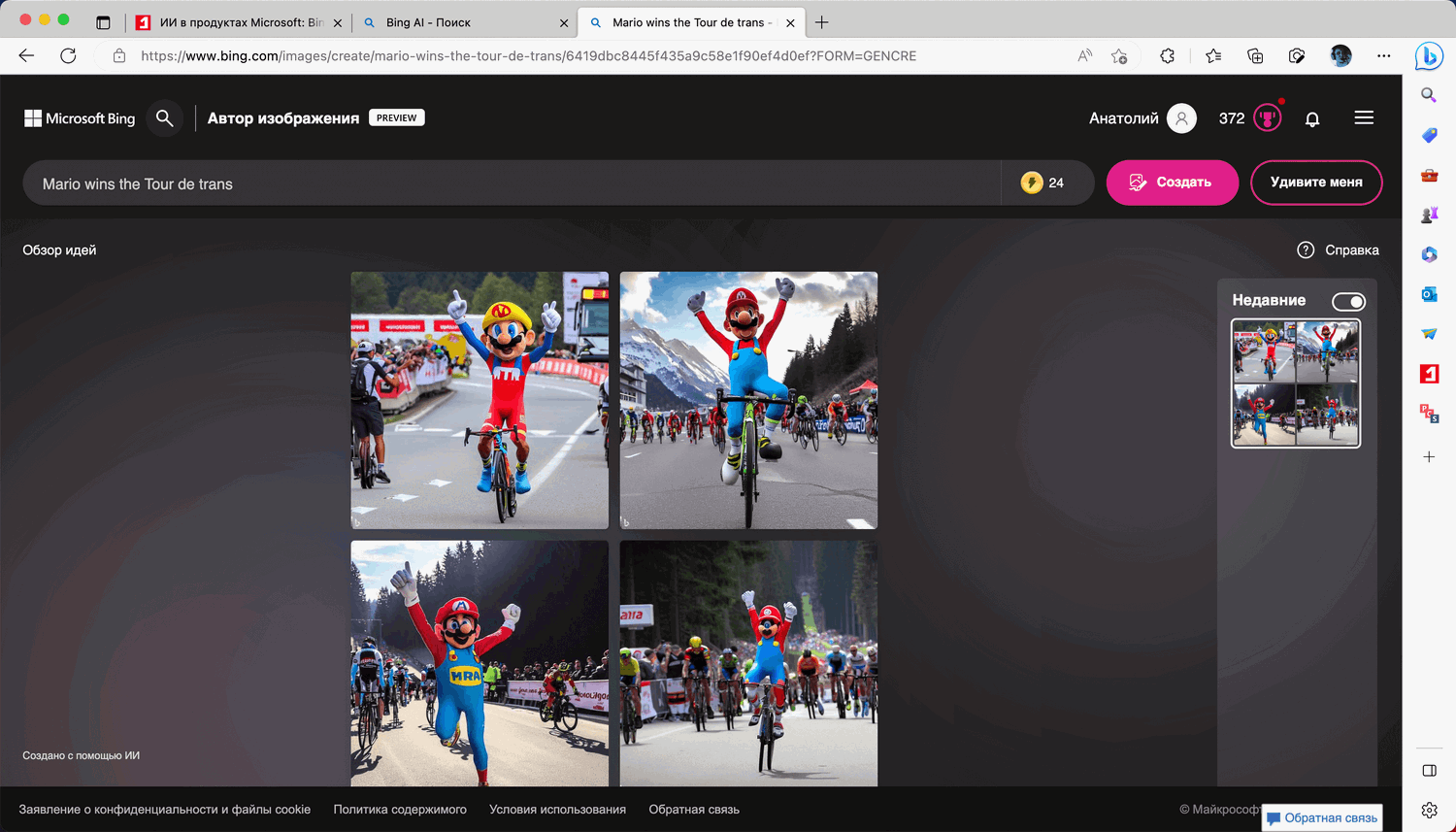 Bing Image Creator основан на технологии DALL-E от OpenAI, которая способна создавать изображения, используя текстовые запросы на английском языке. Эта функция будет доступна в браузере Microsoft Edge (значок появится на боковой панели), где пользователи могут легко генерировать изображения, не покидая текущую веб-страницу. Кроме того, сервис уже доступен по отдельной ссылке.
