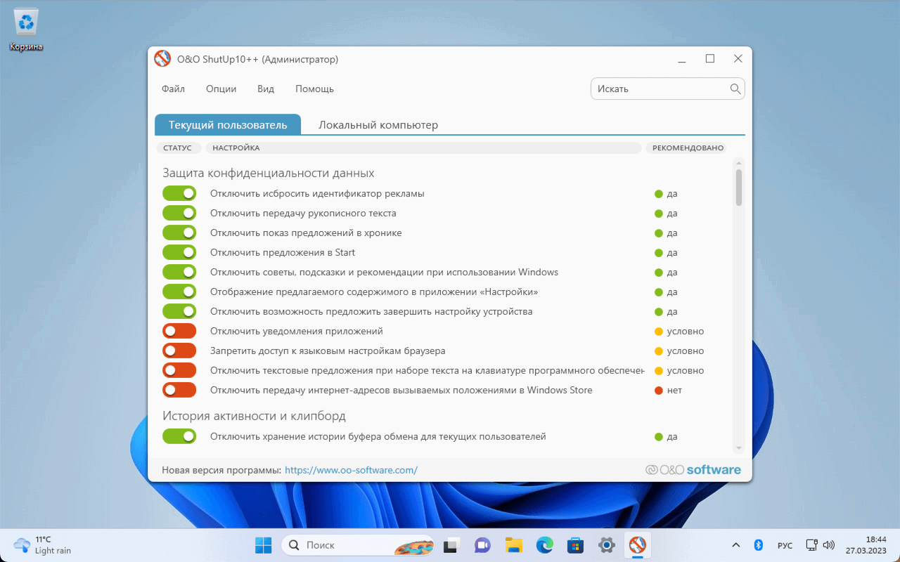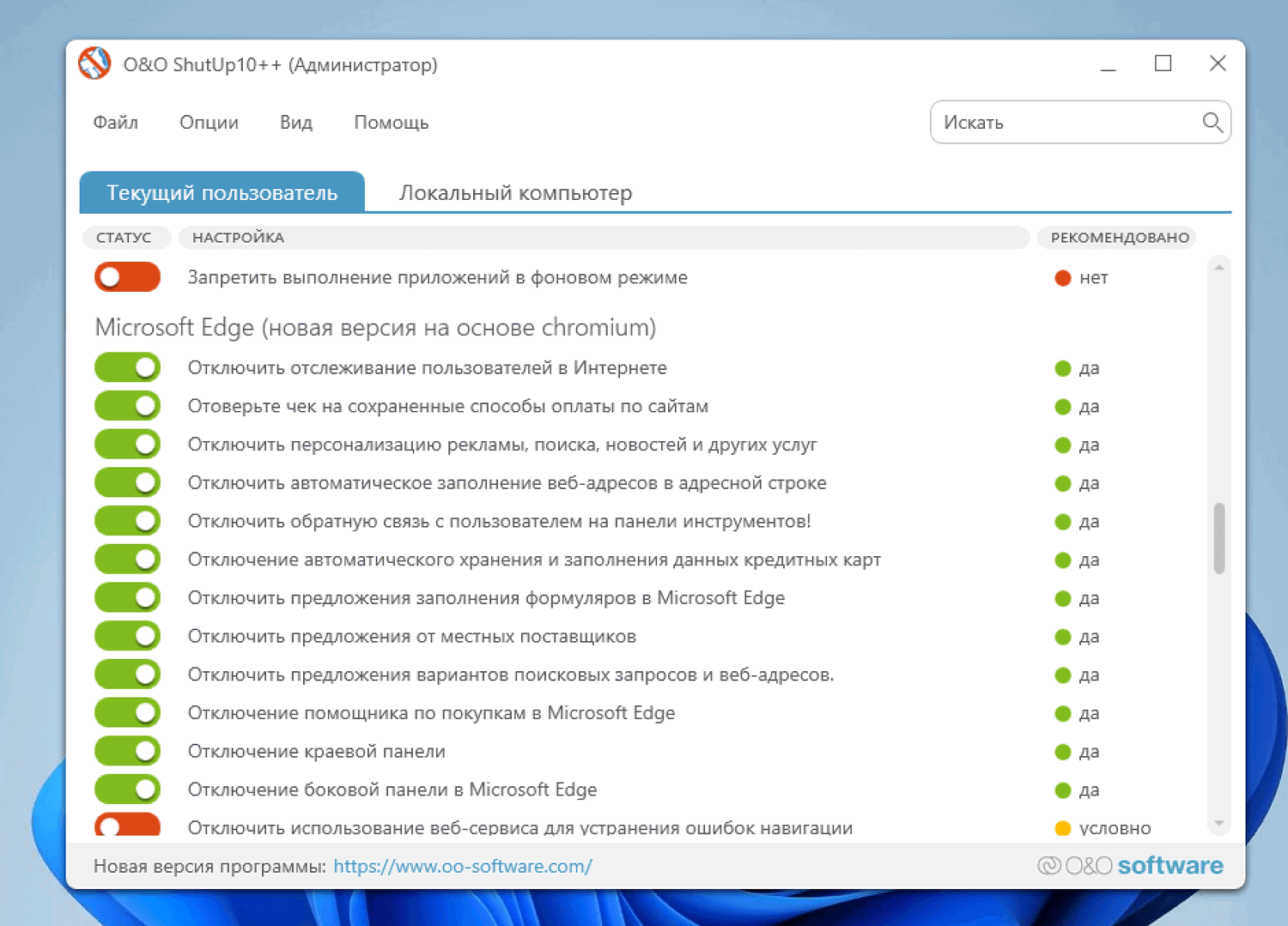 O&O ShutUp10++ — это приложение настройки параметров конфиденциальности для устройств с Windows 10 и Windows 11. Компания O&O выпустила версию O&O ShutUp10++ с поддержкой Windows 11 еще в 2021 году.