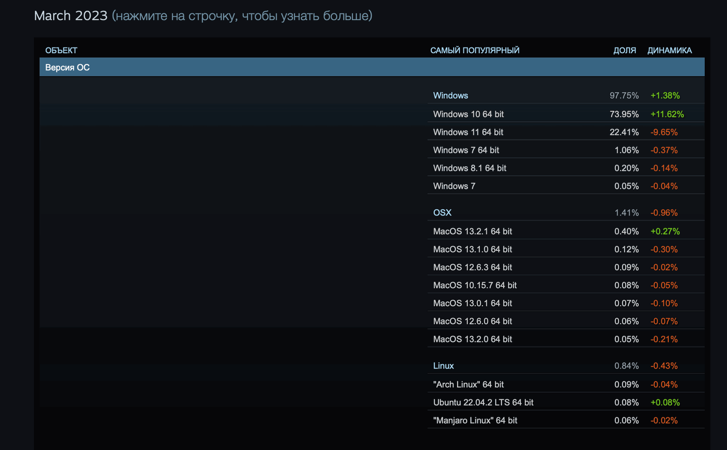 Что касается Steam, статистика за апрель 2023 года может дать более ясную картину.