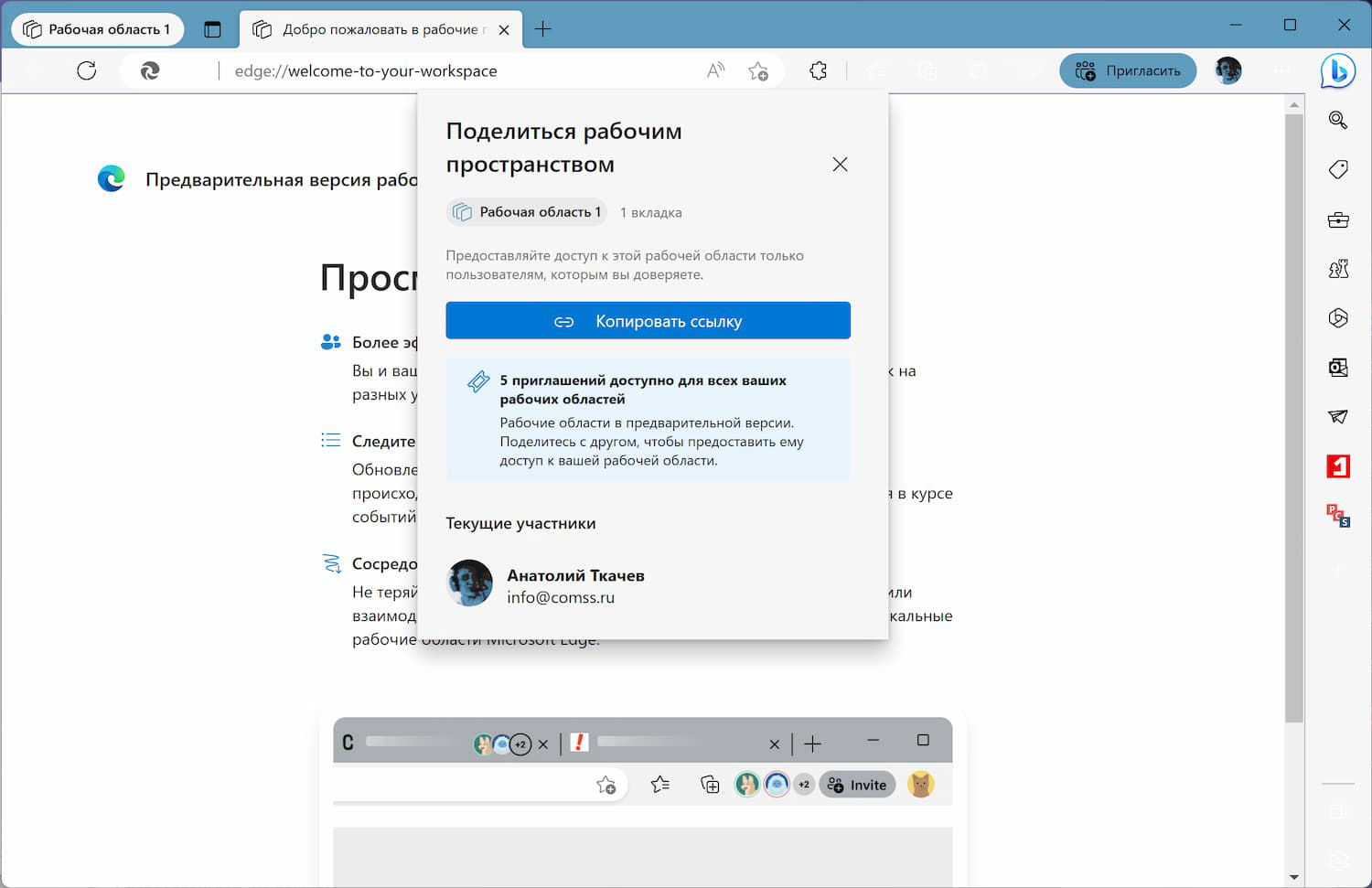 Пока доступна только предварительная версия Microsoft Edge Workspaces, в финальной версии возможны некоторые корректировки. Microsoft активно собирает отзывы и может прислушаться к ним до официального выпуска.