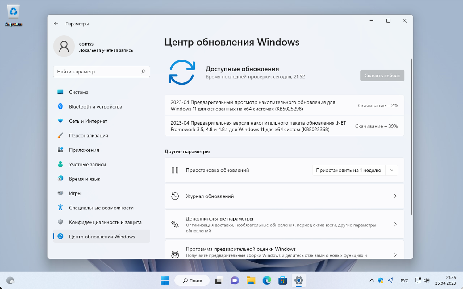 Когда вы увидите, что доступно 2023-04 Предварительный просмотр накопительного обновления для Windows 11 для основанных на x64 системах (KB5025298) нажмите Скачать и установить.