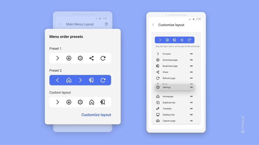 Благодаря редактируемым меню в Vivaldi для Android, пользователи могут адаптировать браузер под свои потребности:
