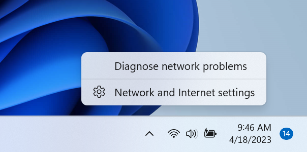 - При щелчке правой кнопкой мыши на значке сети в системном трее добавлена опция диагностики проблем с сетью.