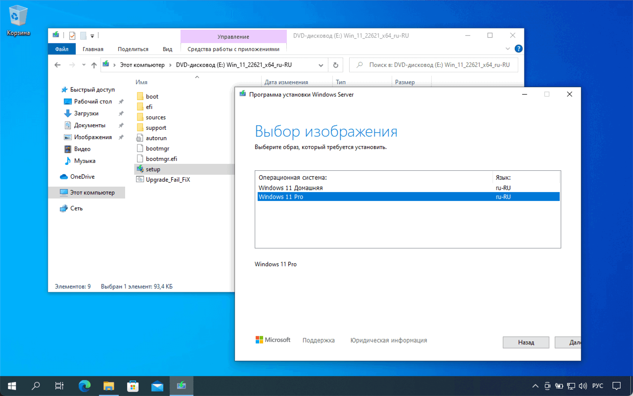 Чтобы установить новую сборку с помощью ISO-образа с сохранением данных и программ выполните следующие действия: