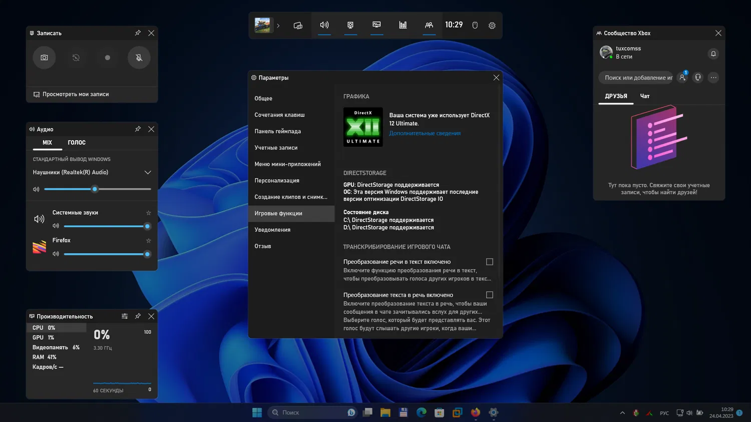 - Используйте сочетание клавиш Win+G, чтобы открыть игровую панель в Windows 11 или Windows 10. На рабочем столе появится оверлей с системной информацией и инструментами, связанными с играми.
