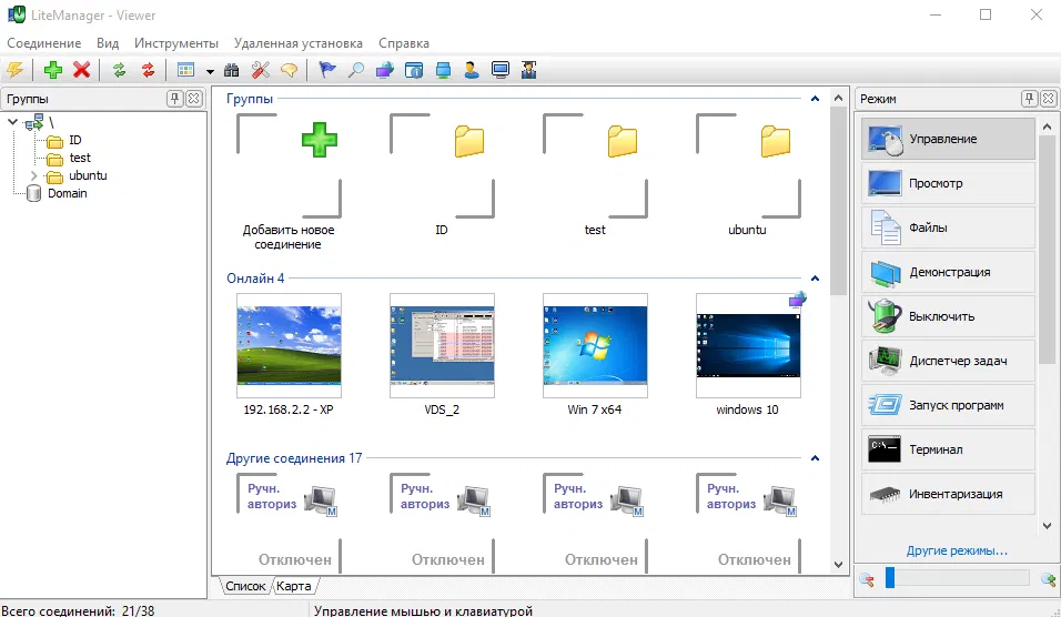 - Диспетчер устройств и инвентаризация: LiteManager собирает информацию об аппаратных ресурсах удаленного компьютера, предоставляя полный обзор устройств и их состояния.