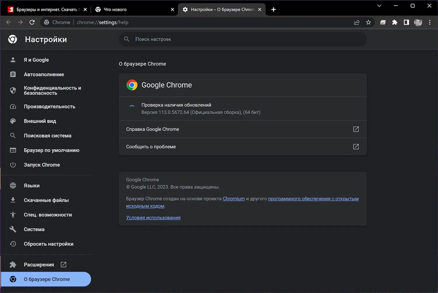 - Chrome для Windows: 113.0.5672.63 или 113.0.5672.64
