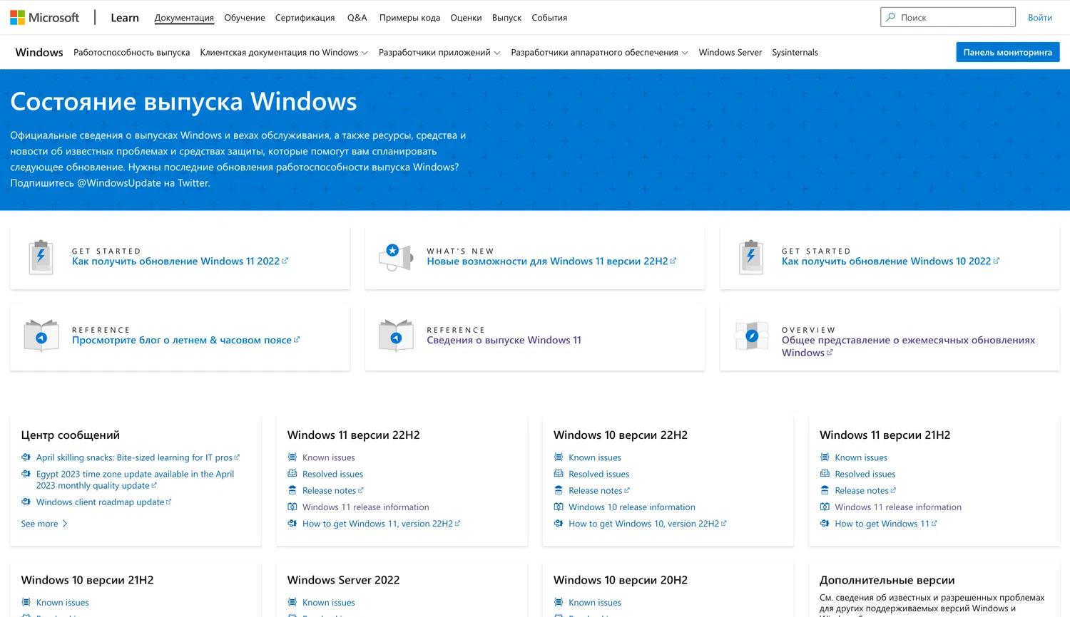Список известных проблем содержит информацию об подтвержденных Microsoft ошибках различных версий Windows. Ознакомиться с известными проблемами и получить дополнительные сведения о выпуске можно в информационном центре «Состояние выпуска Windows».
