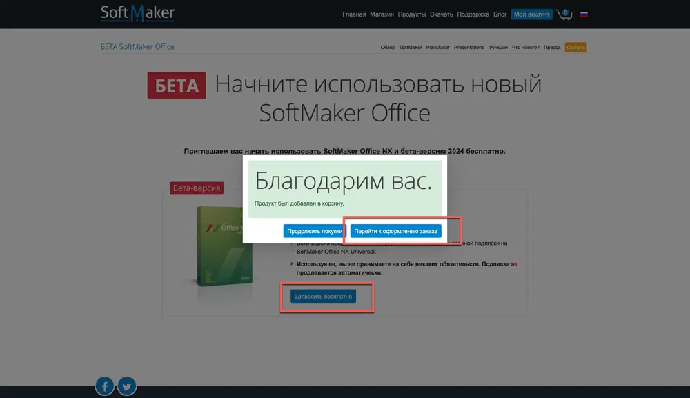 1. Перейдите на страницу бета-тестирования SoftMaker Office 2024.