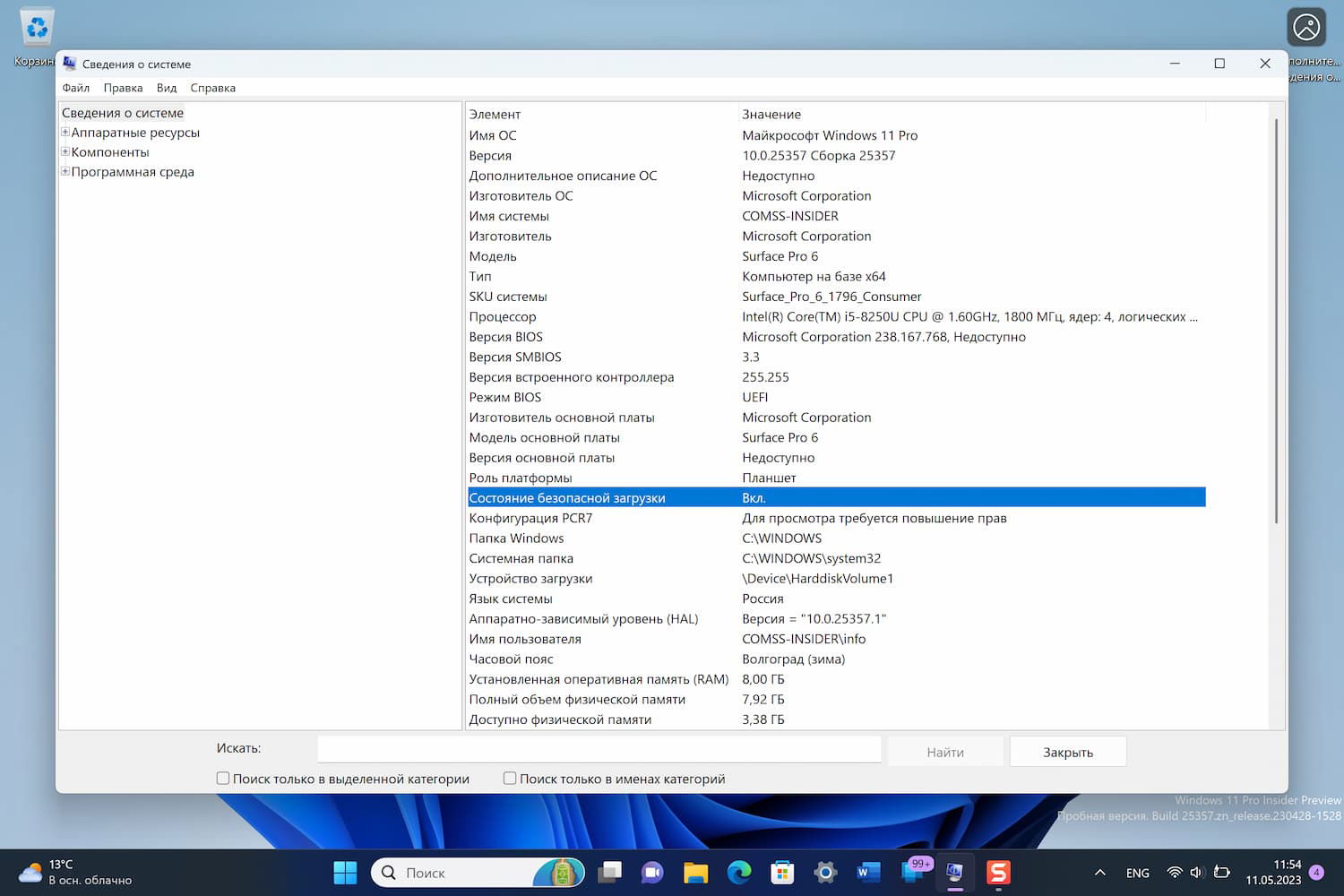 Безопасная загрузка включена, если в разделе «Сведения о системе» отображается сообщение: Состояние безопасной загрузки: Вкл.