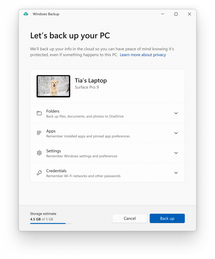 После того как резервная копия создана с помощью нового приложения "Программа архивации данных" или посредством посещения раздела "Учетные записи > Резервное копирование Windows" в меню "Параметры", пользователь может опробовать новую функцию восстановления во время первичной настройки нового ПК или при сбросе настроек существующего ПК с этой сборкой.