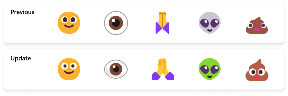 - В ответ на отзывы пользователей обновлены некоторые эмодзи в текущем наборе. Ошибки, выявленные в этом релизе, будут исправлены в будущих версиях.