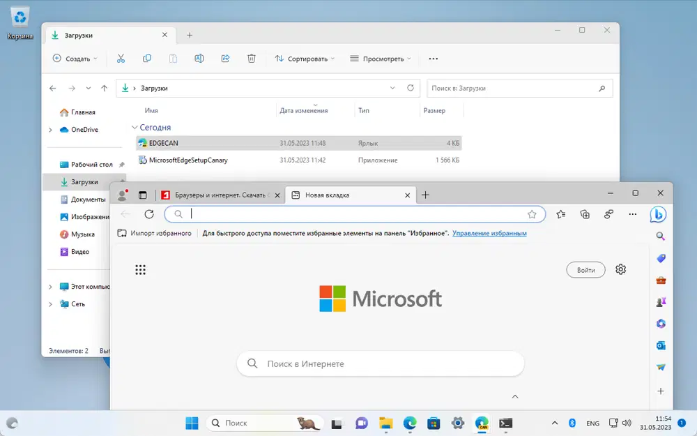 - Запуск скрипта создает ярлык для Microsoft Edge Canary в папке загрузок системы с уже установленными параметрами включения.