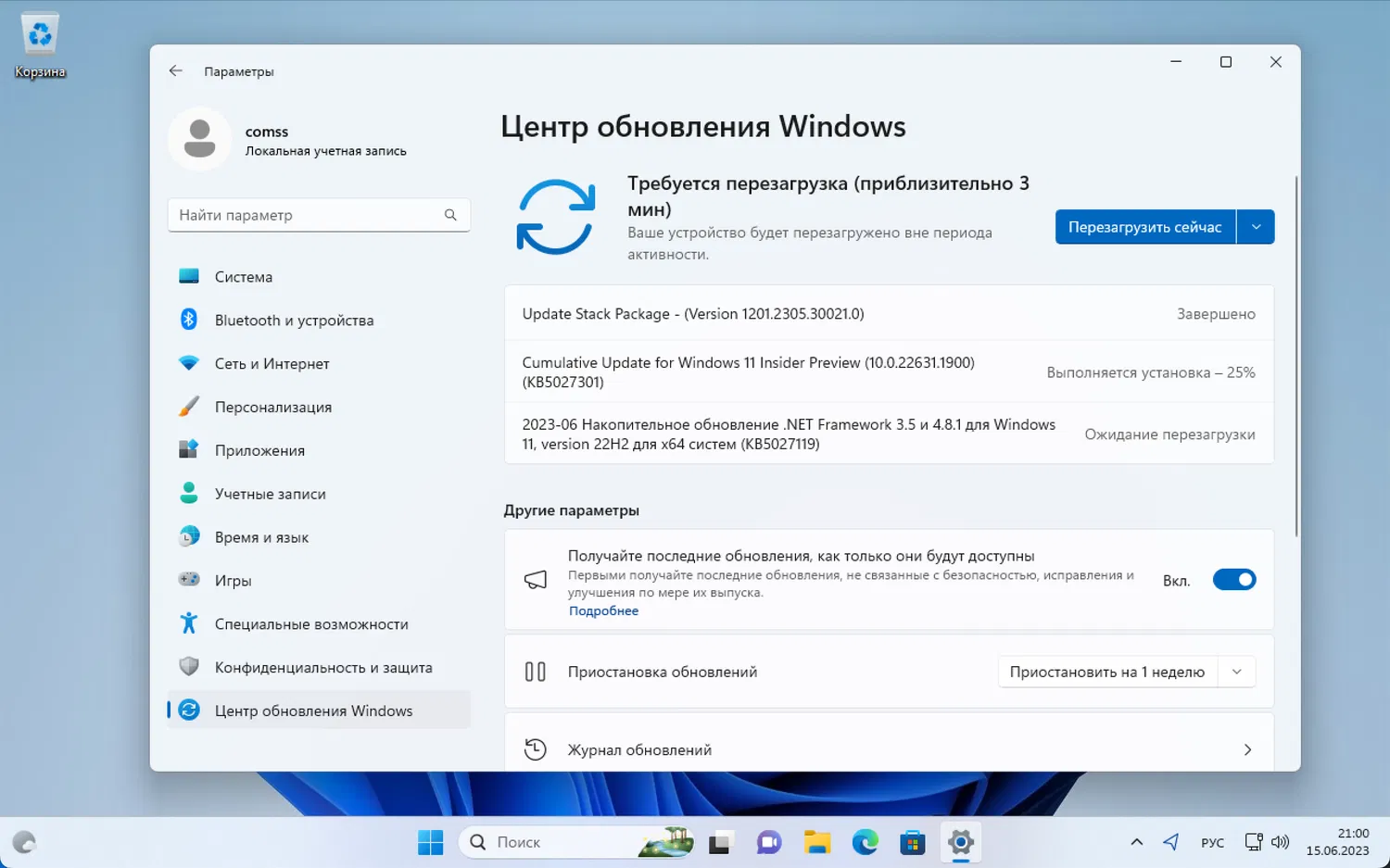 Для завершения установки потребуется перезагрузка компьютера. После обновления номер сборки Windows 11 поменяется на 22631.1900 или 22621.1900 (в зависимости от установленной сборки).